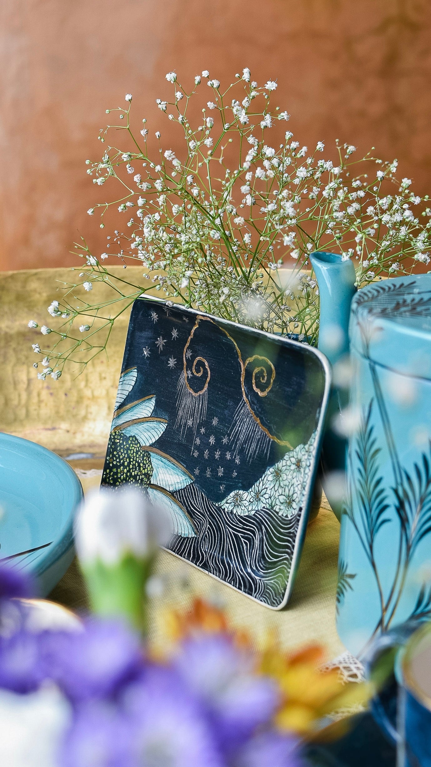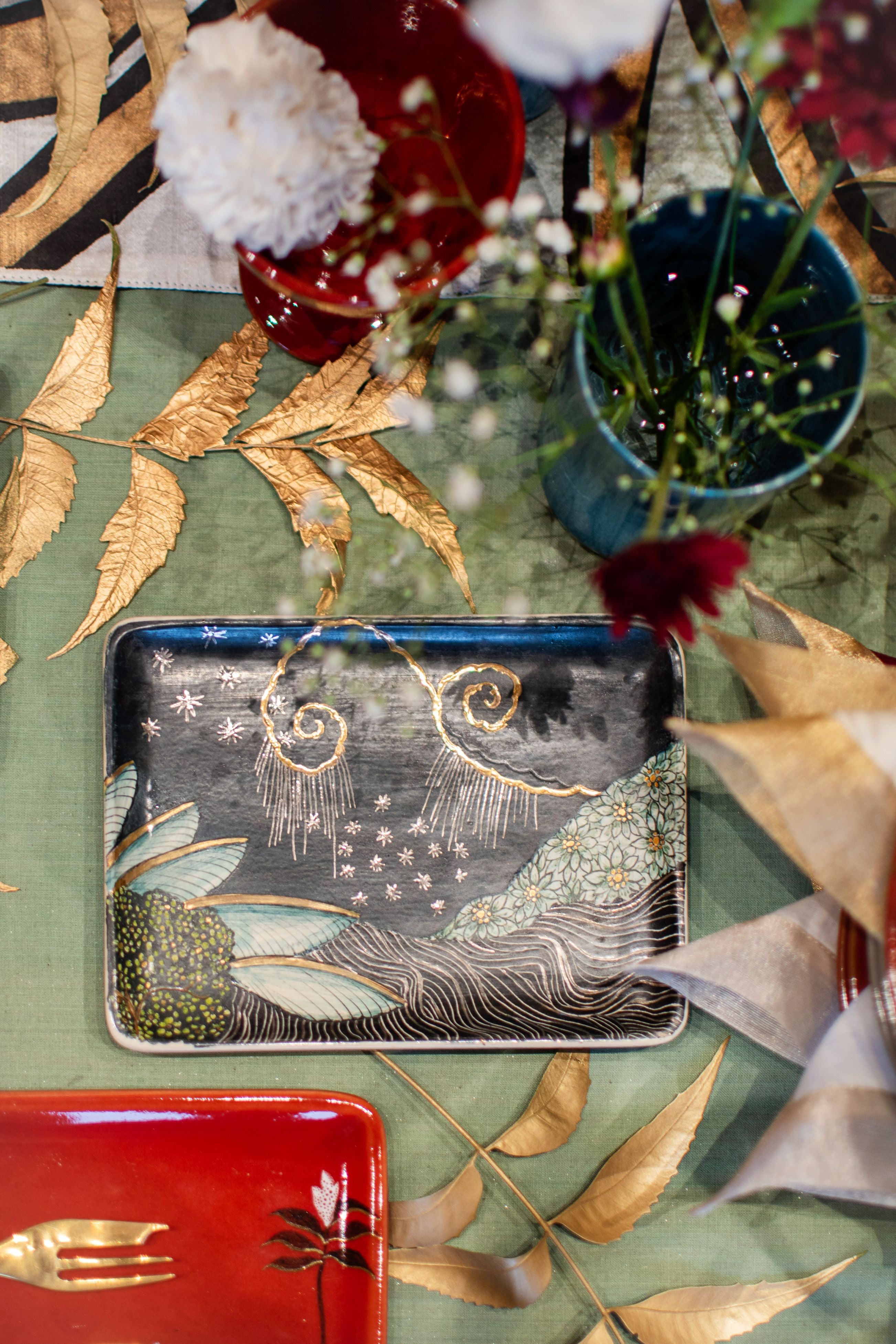 Care Instructions: Our ceramics are stain-resistant and can be safely cleaned in a dishwasher or by hand using warm water and mild soap, just like your regular ceramics or china. However, pieces featuring a gold lustre/ silver should be hand-washed only.
