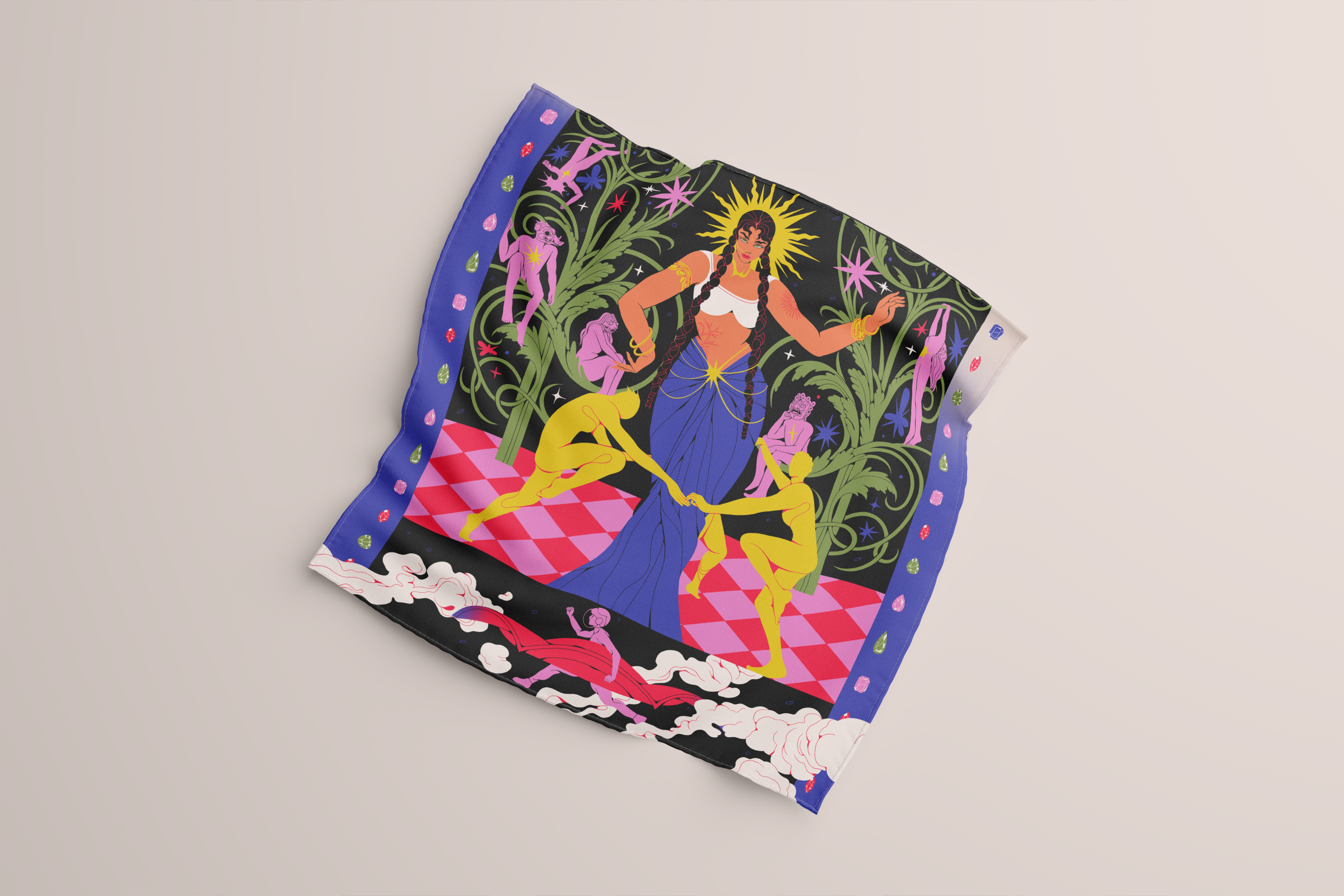 To the denizens of the Cosmicpunk universe, the Traveler and the story of his discovery of the Dark Sun requires no introduction. It is a folklore, it is a legend- and thereby finds itself being adapted into plays. Presented here on a scarf, is a poster of one such rendition- nay homage- by the Daydream Theatre from the planet Shin’nen.